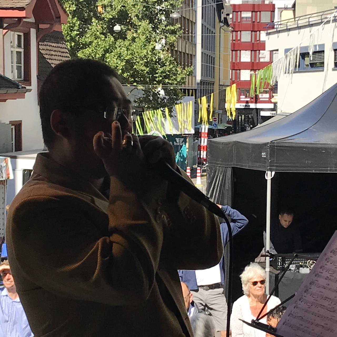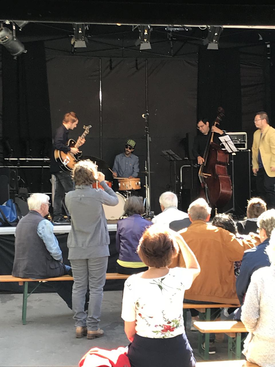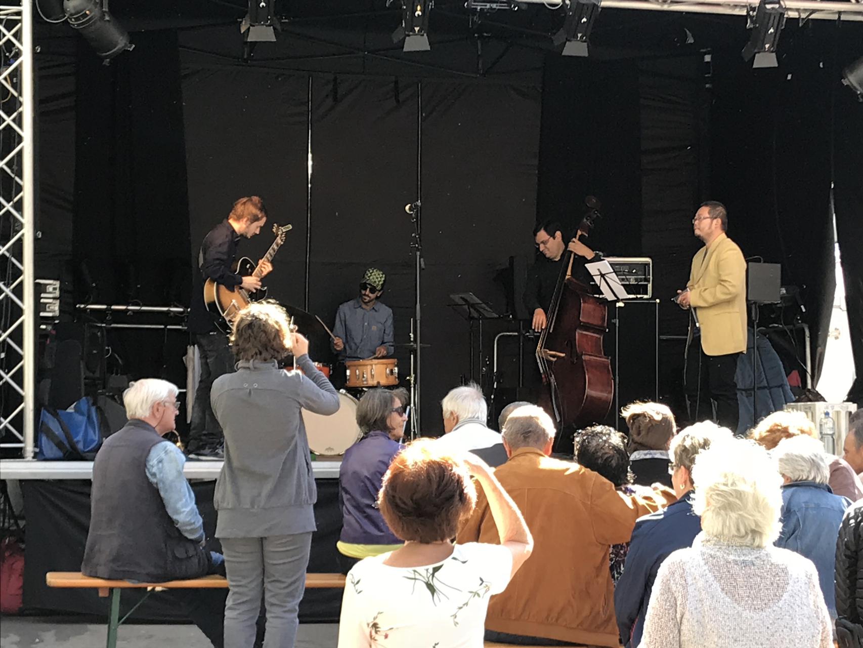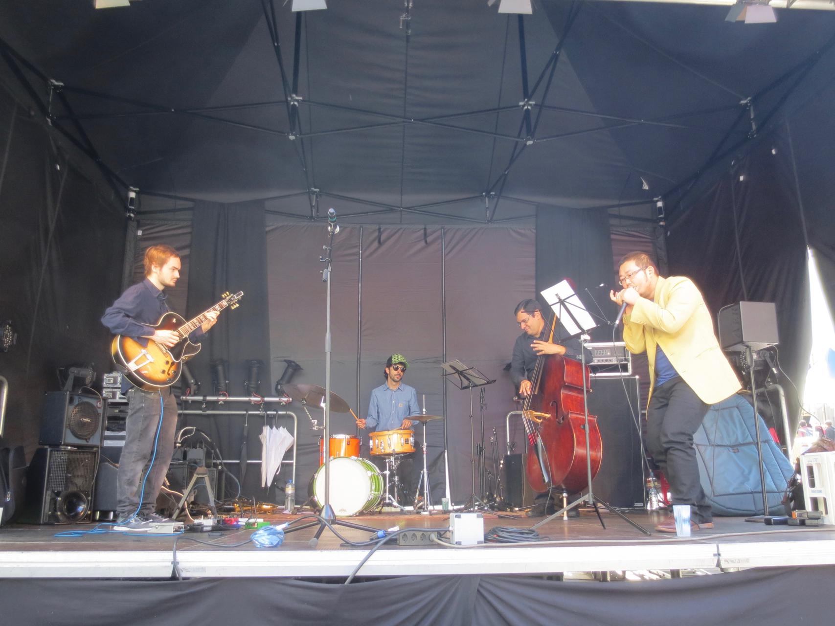 Silvan Joray an der Gitarre, Roberto Koch am Bass, Josep Cordobes Schlagzeug und Tian Long-Li Mundharmonika.