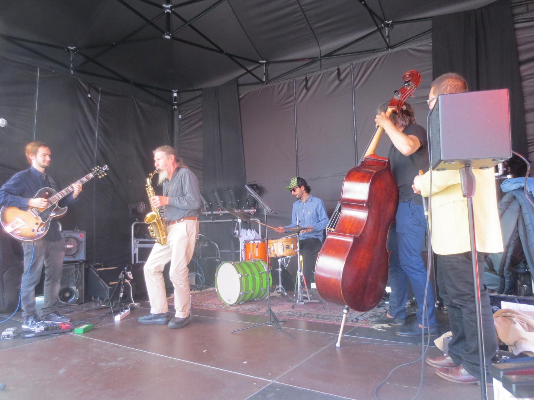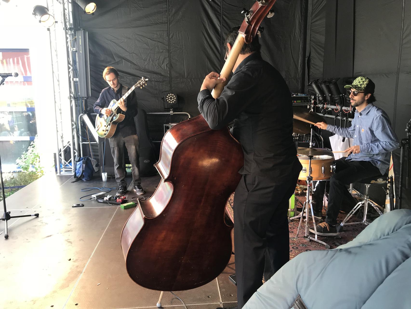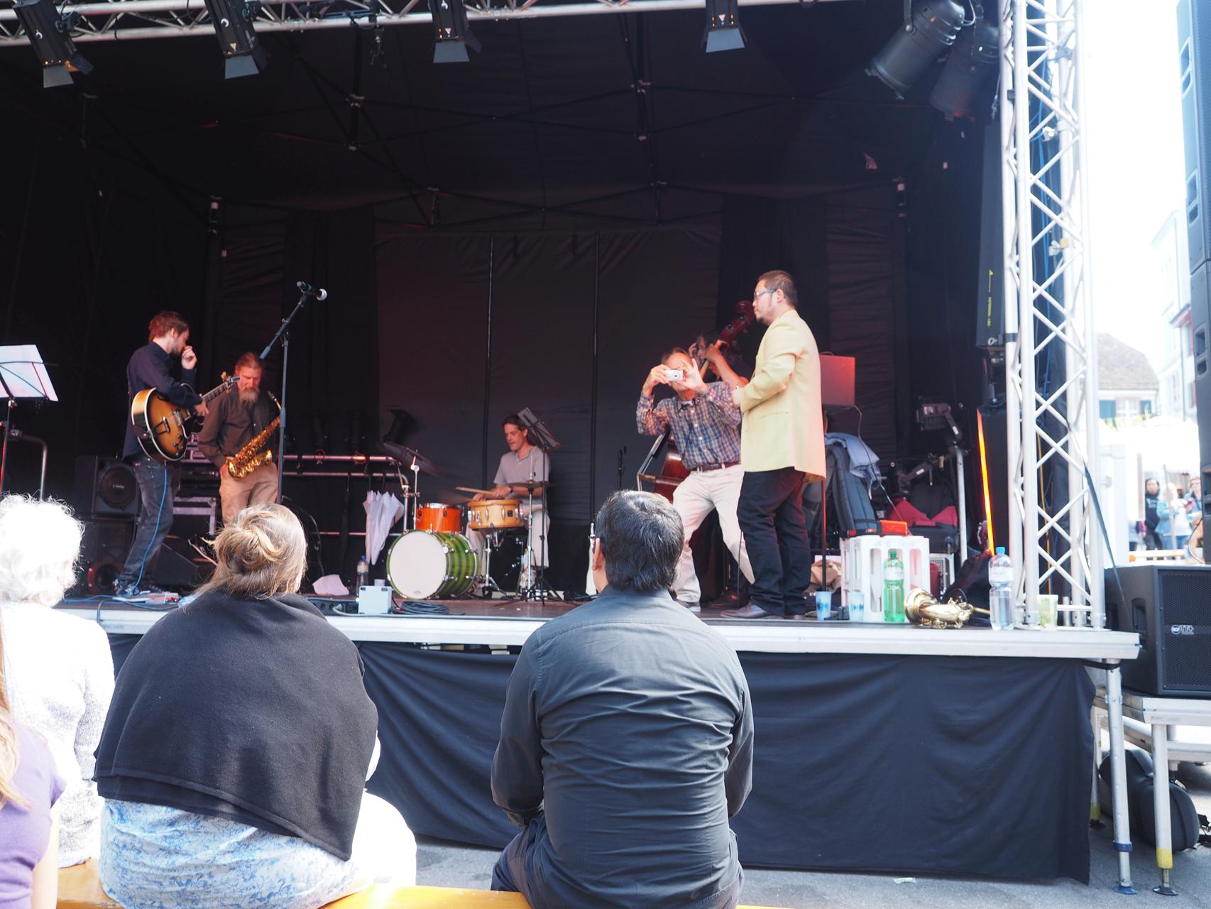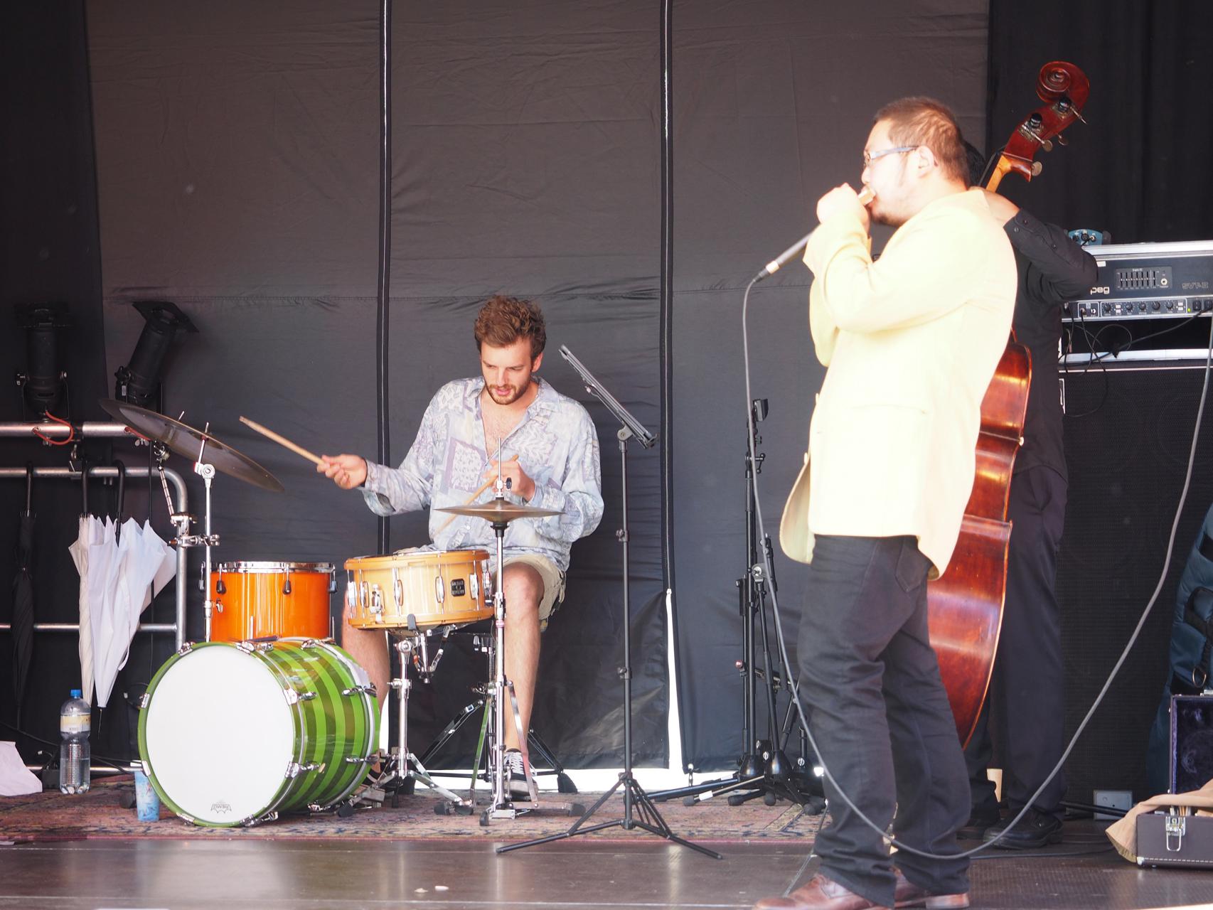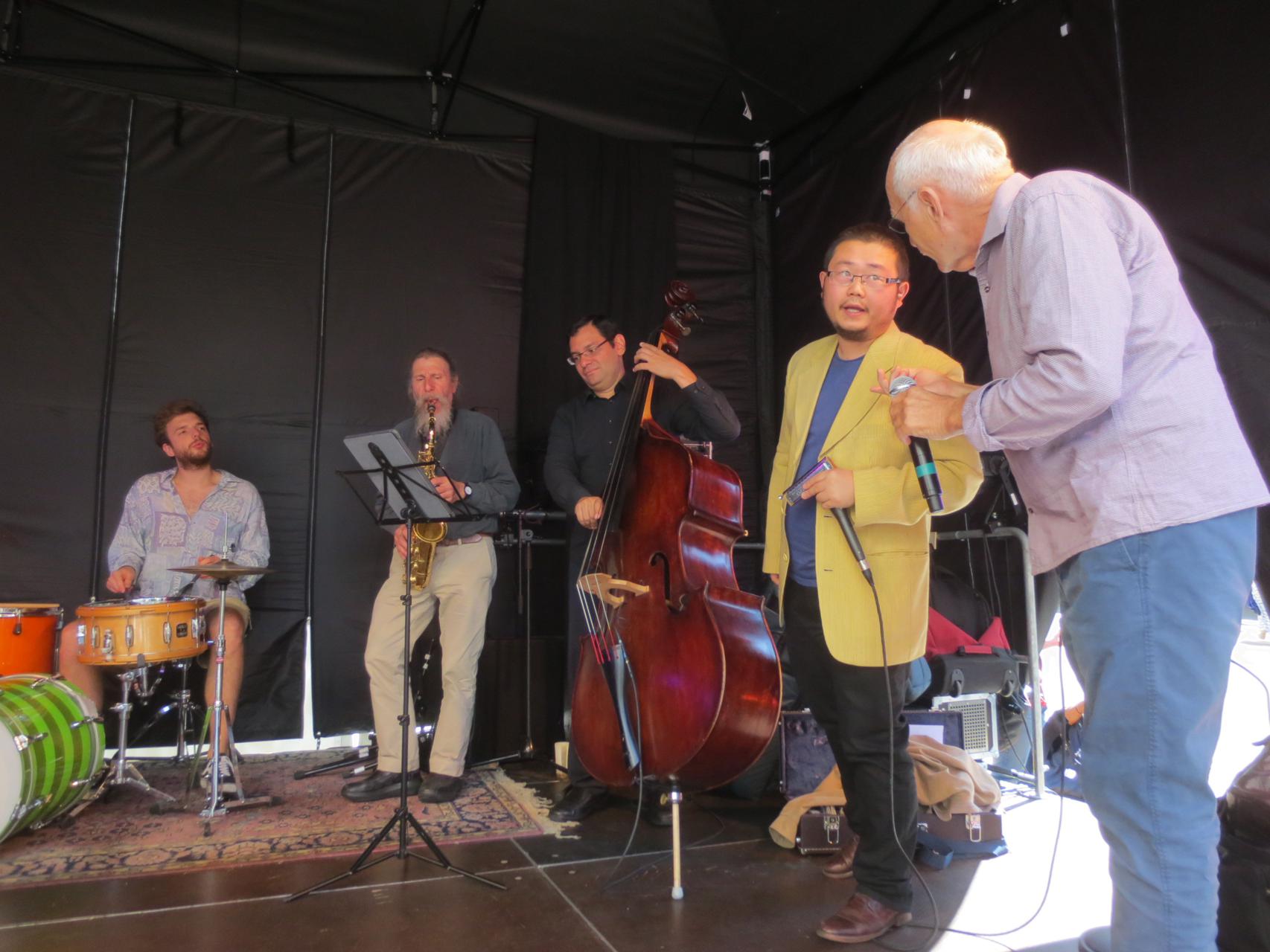 Silvan Joray an der Gitarre, Roberto Koch am Bass, Josep Cordobes Schlagzeug und Tian Long-Li Mundharmonika.