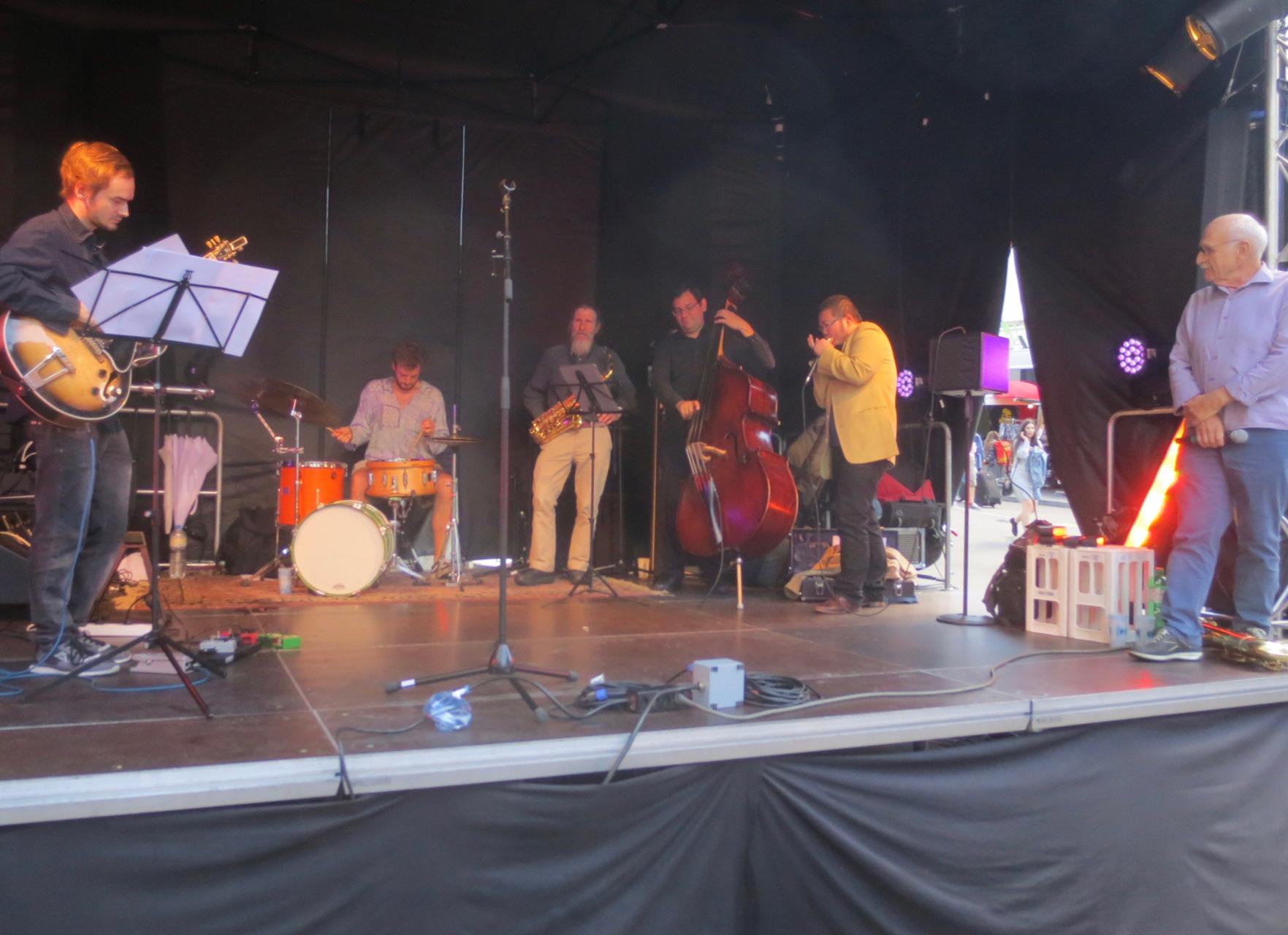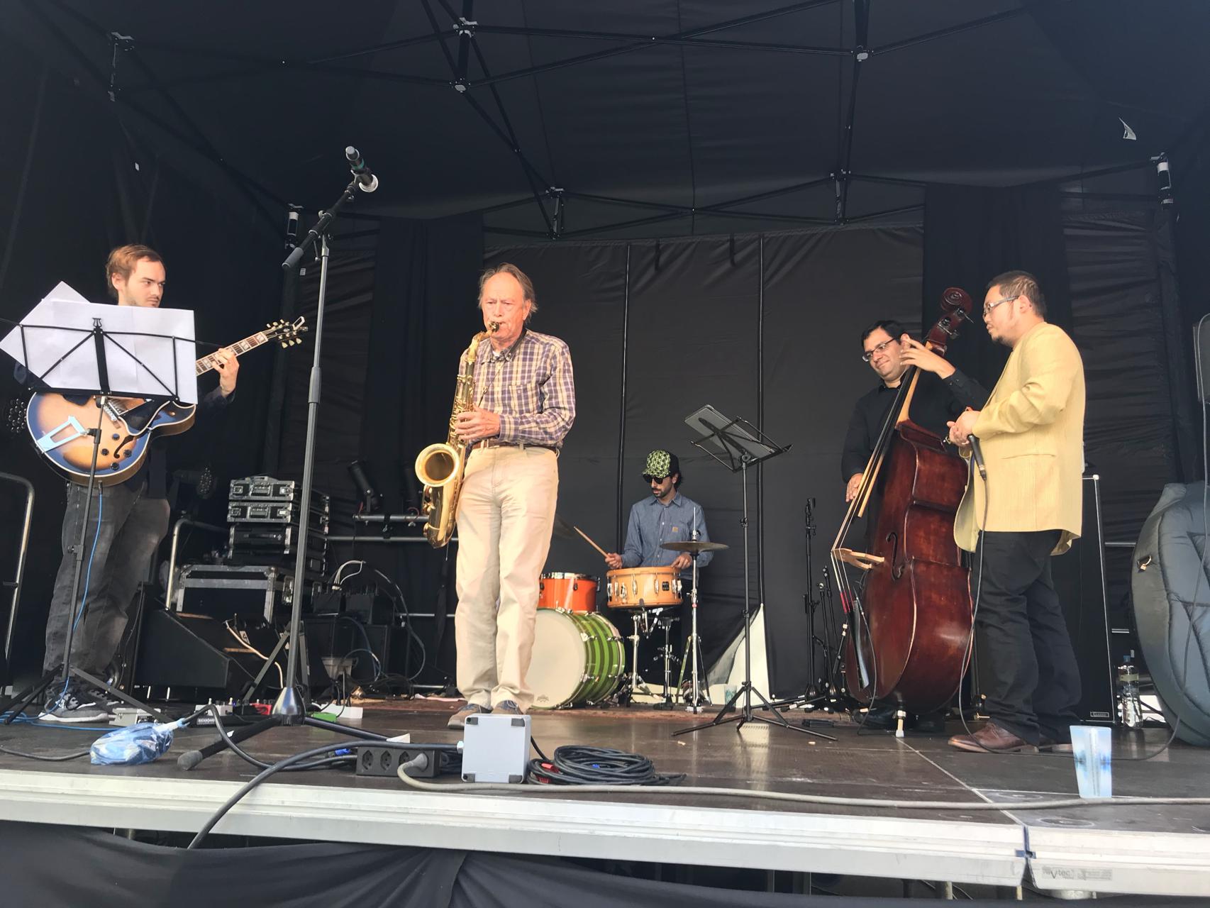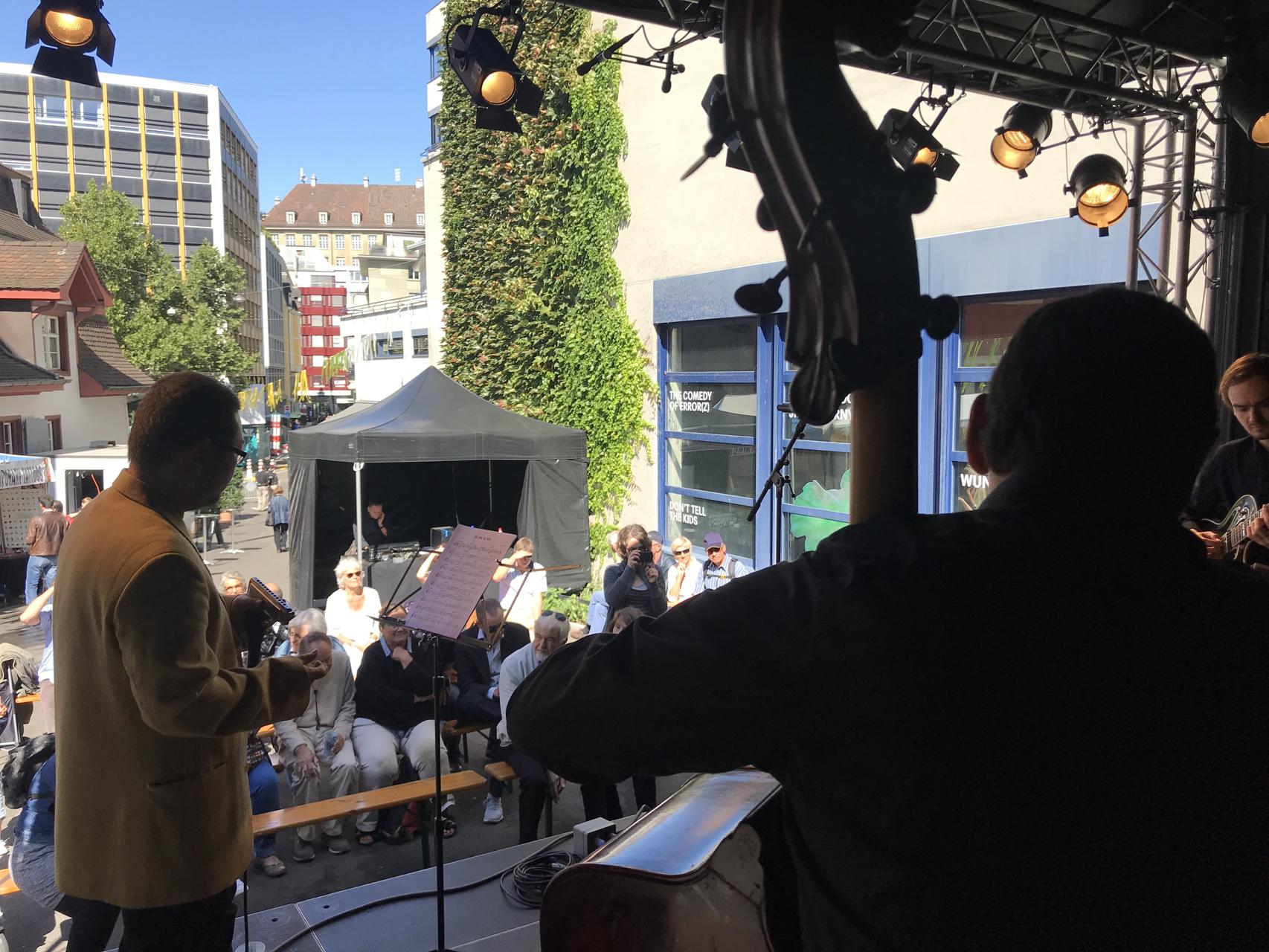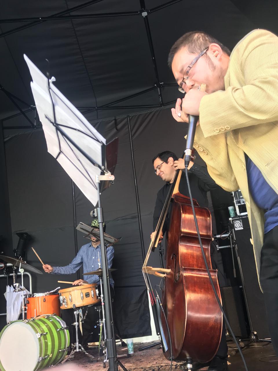 Silvan Joray an der Gitarre, Roberto Koch am Bass, Josep Cordobes Schlagzeug und Tian Long-Li Mundharmonika.
