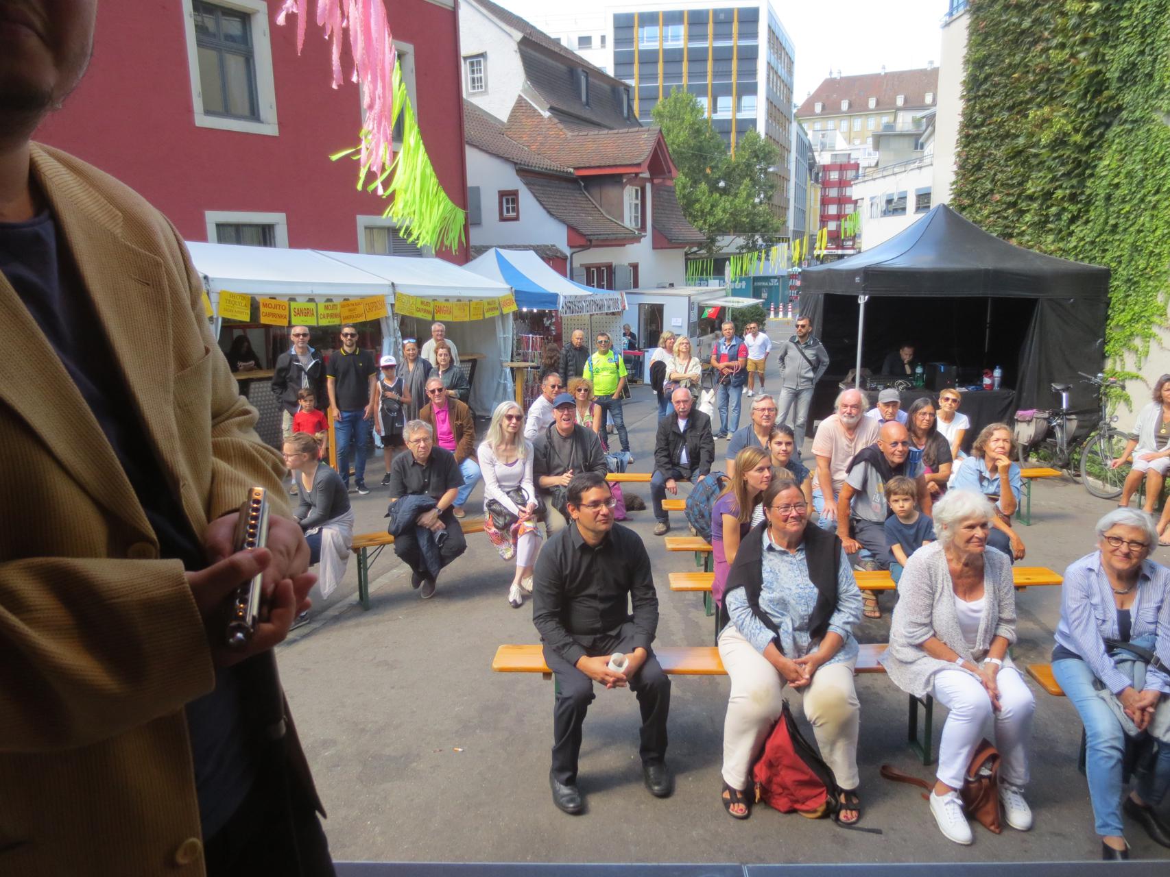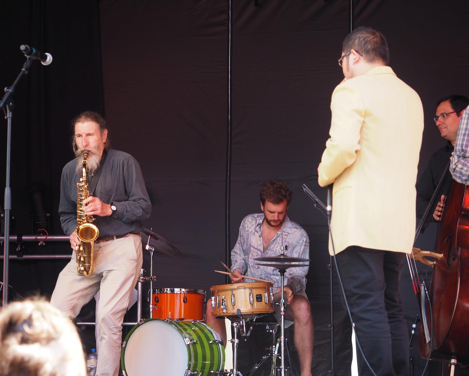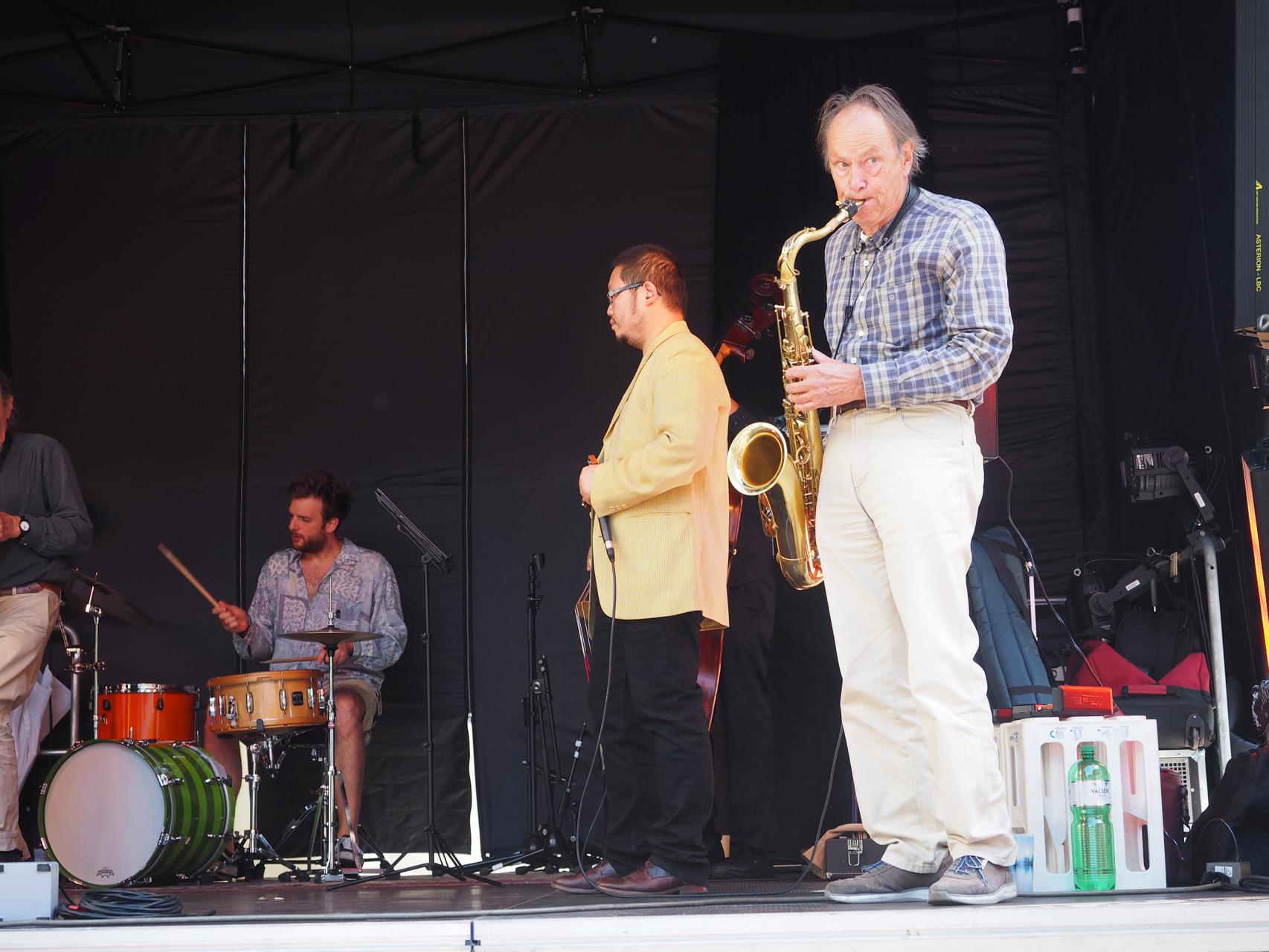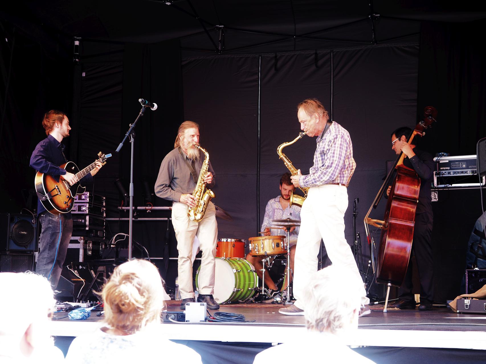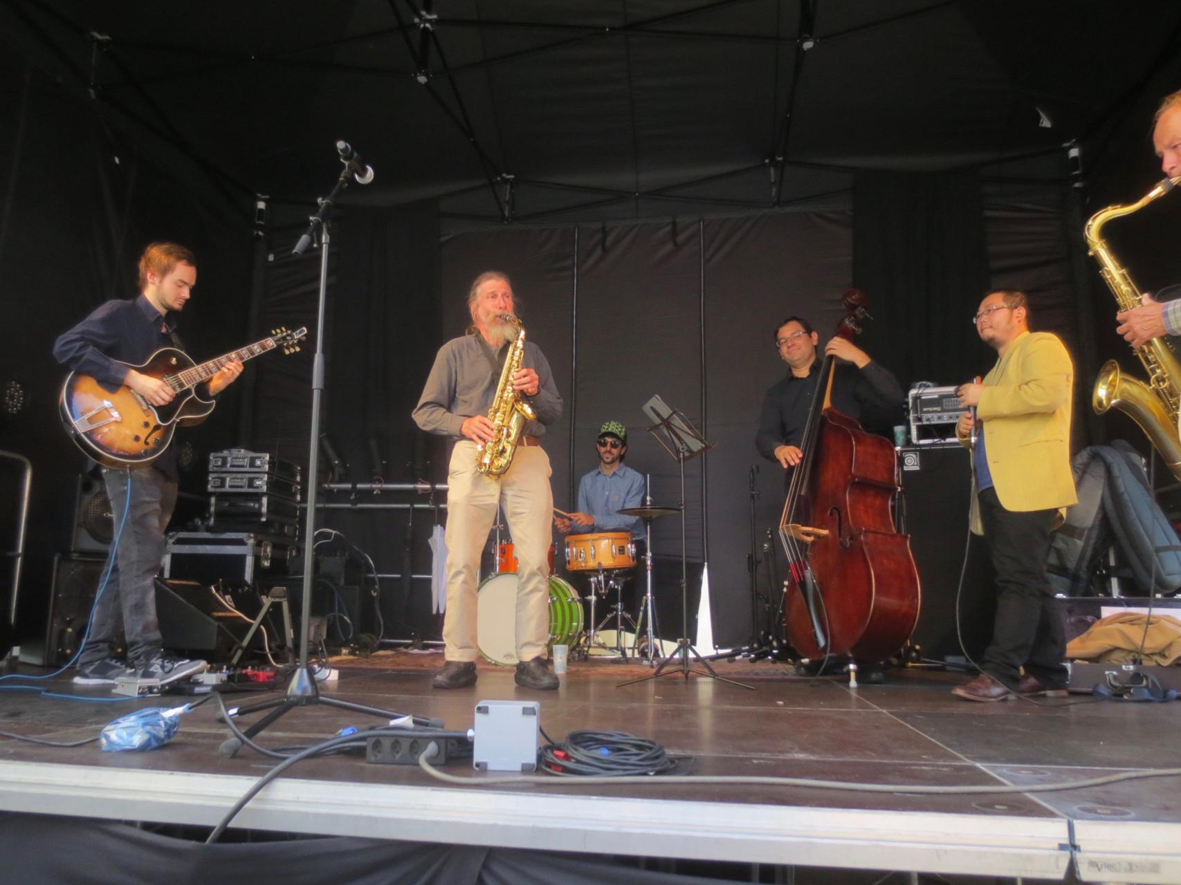 Silvan Joray an der Gitarre, Roberto Koch am Bass, Josep Cordobes Schlagzeug und Tian Long-Li Mundharmonika.