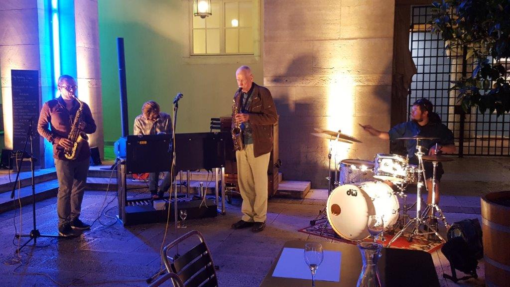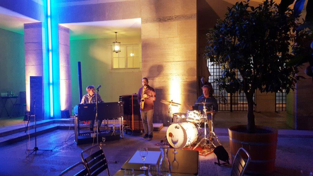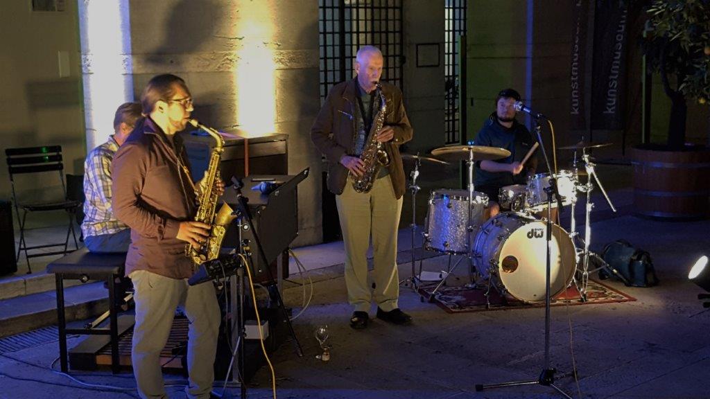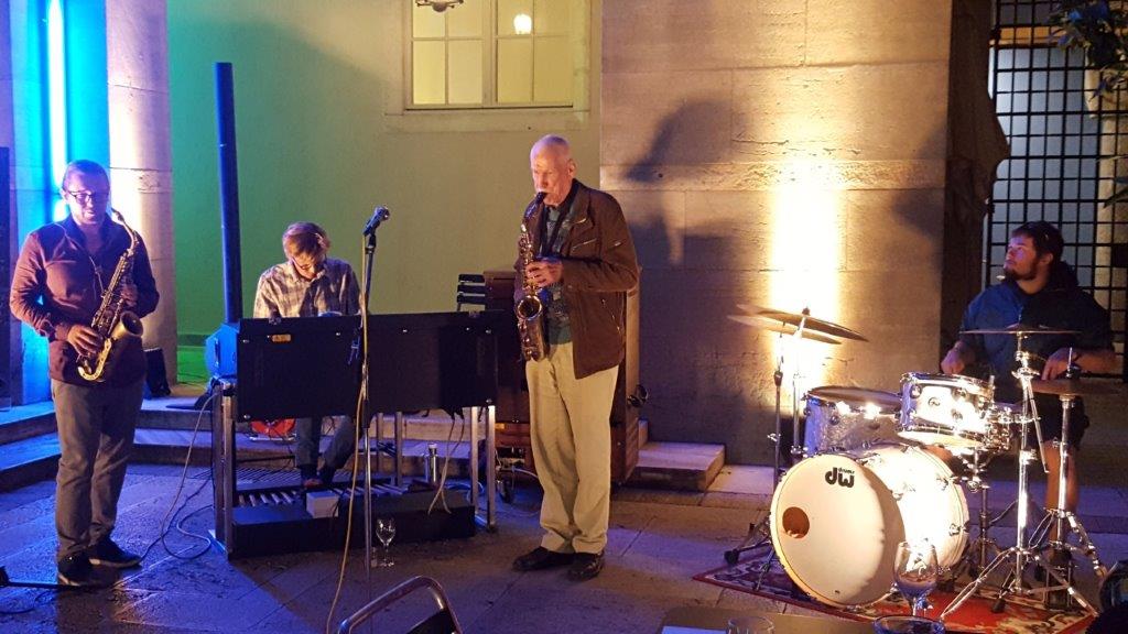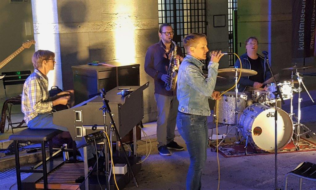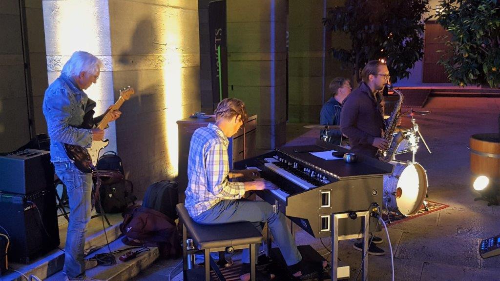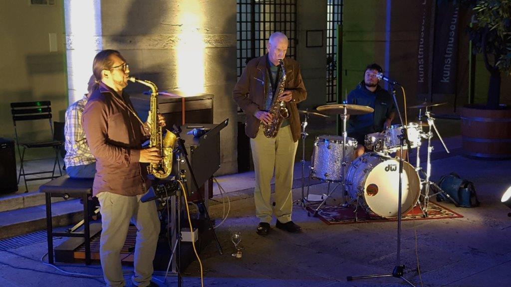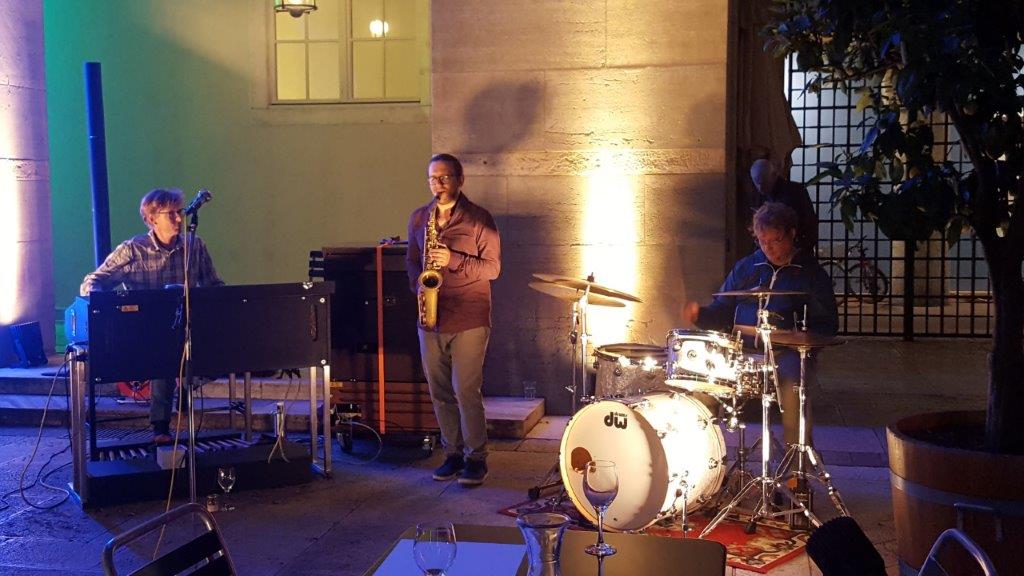 Hannes Gutfleisch, Schlagzeug, Niko Seibold, Altosax, und Will Bartlett, Hammond.