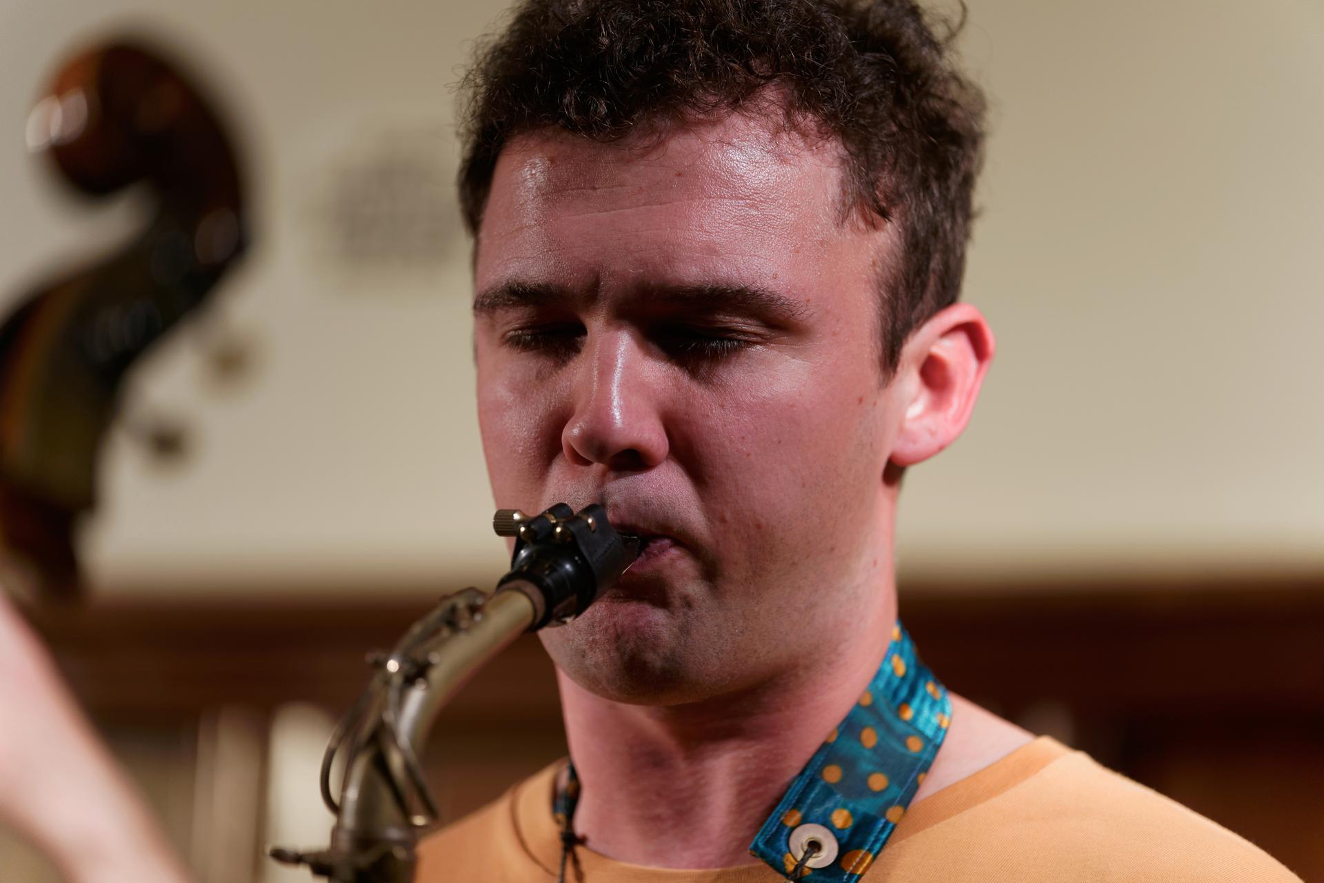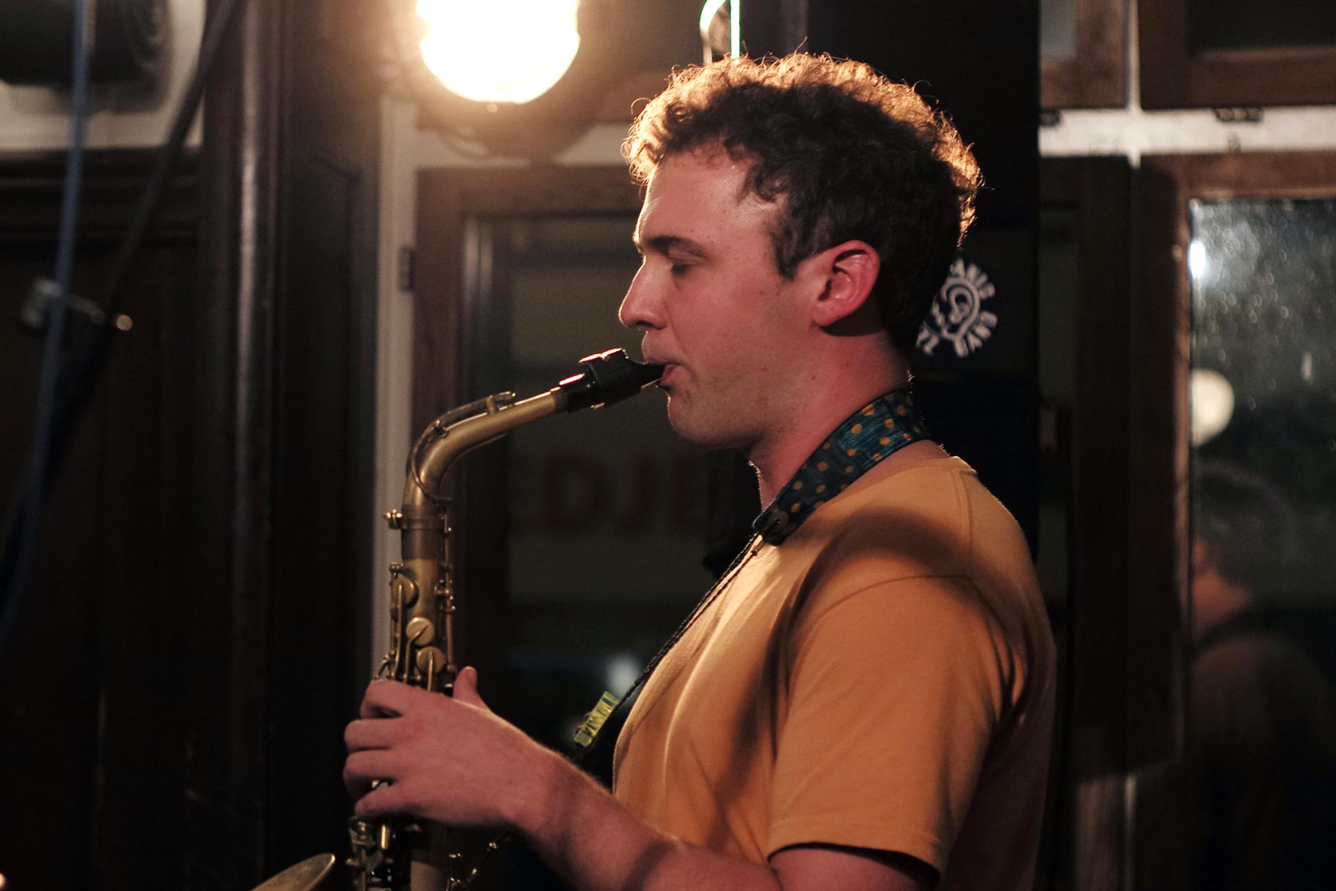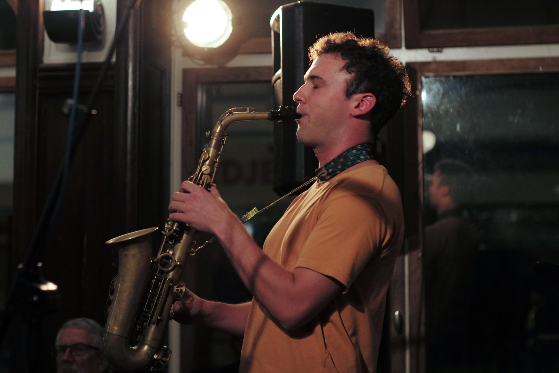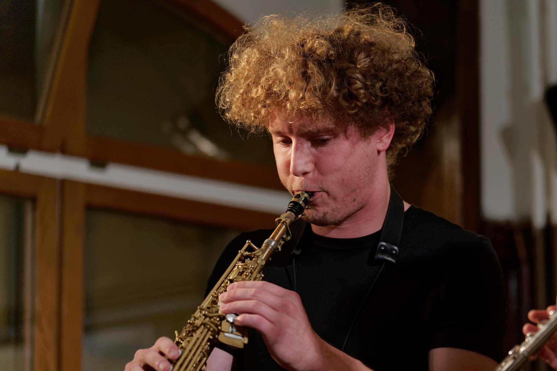Kira Linn Linntett mit Kira Linn am Bariton, Nino Wenger am Alto, Christopher Kunz am Tenor, Lukas Keller am Bass, Lukas Grossmann am Piano und Johannes Koch am Schlagzeug