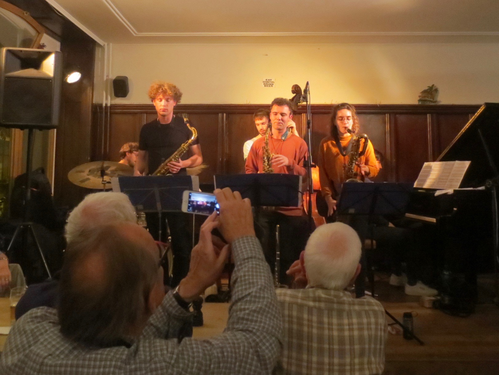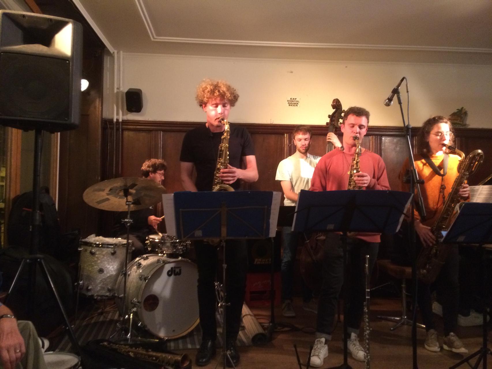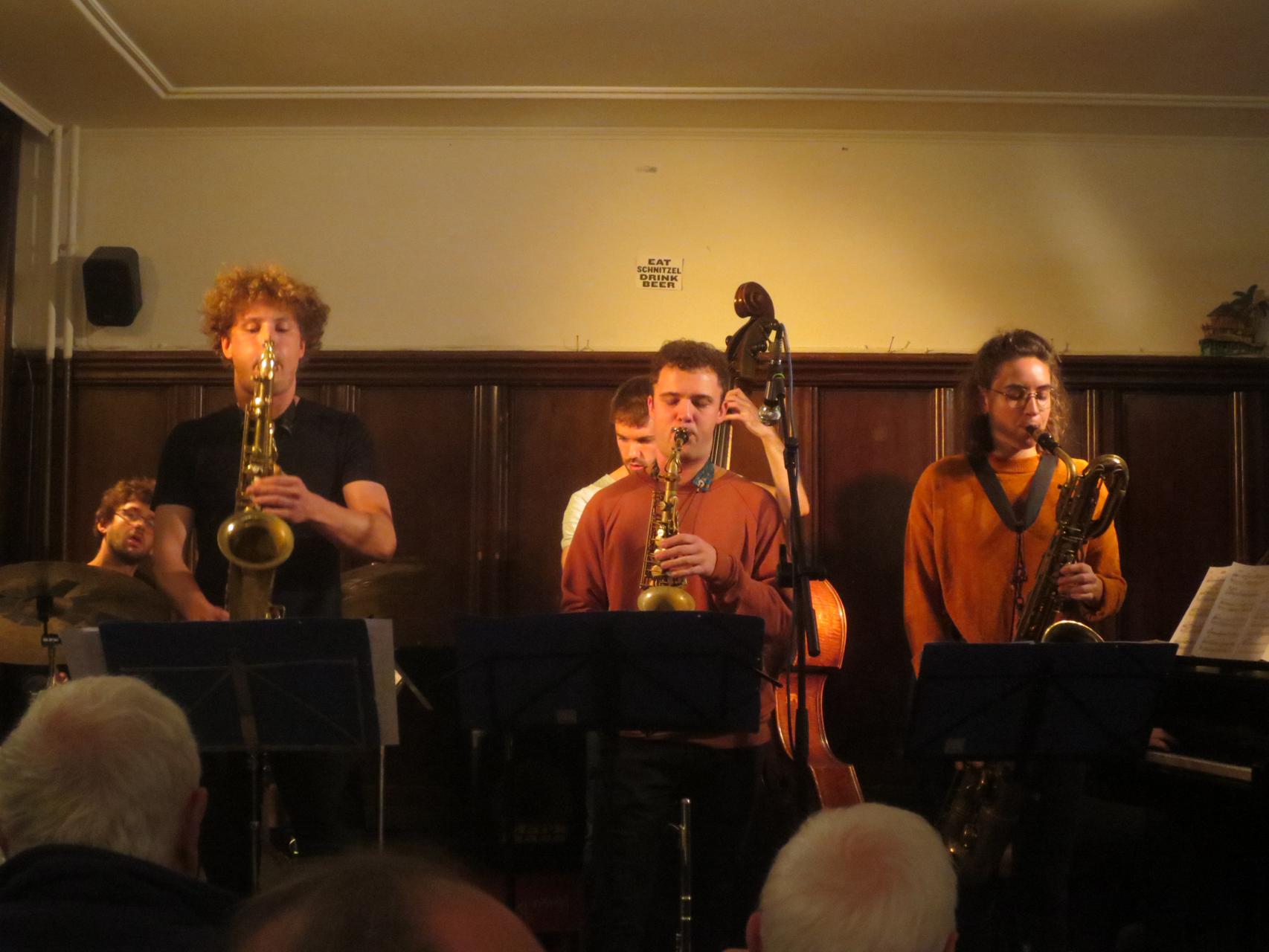 Bernd Haider, Thomi Moeckel und Claudio Bergamin tp, Erwin Veith tb, Richard Lipiec ts, Mario Schneeberger as, Ben Zahler und Mario Alonso fl, Philipp Gloor g, Jannis Obiols p, ilias Weber b, Peter Dieterle, Max Liebenberg, Jakub, Enrico Solano und Jean-Lou Treboux dr.