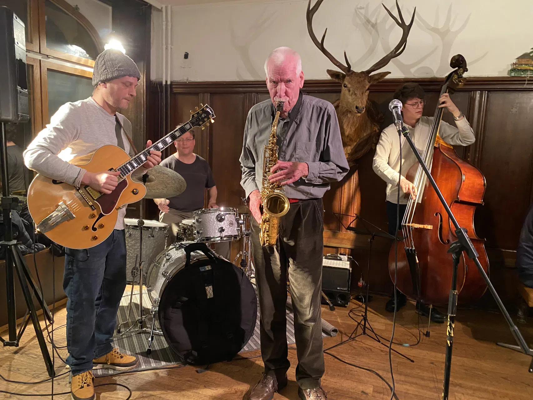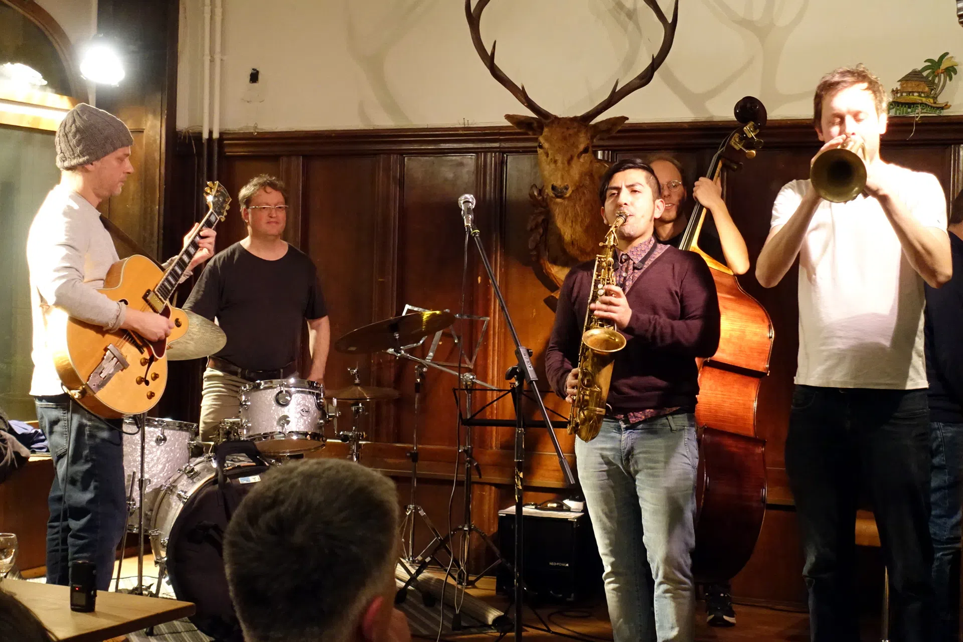 Christian Gutfleisch, Piano, Johannes Gutfleisch, drums, Tobias Melcher, Bass, und Patrick Joray, Tenorsax.