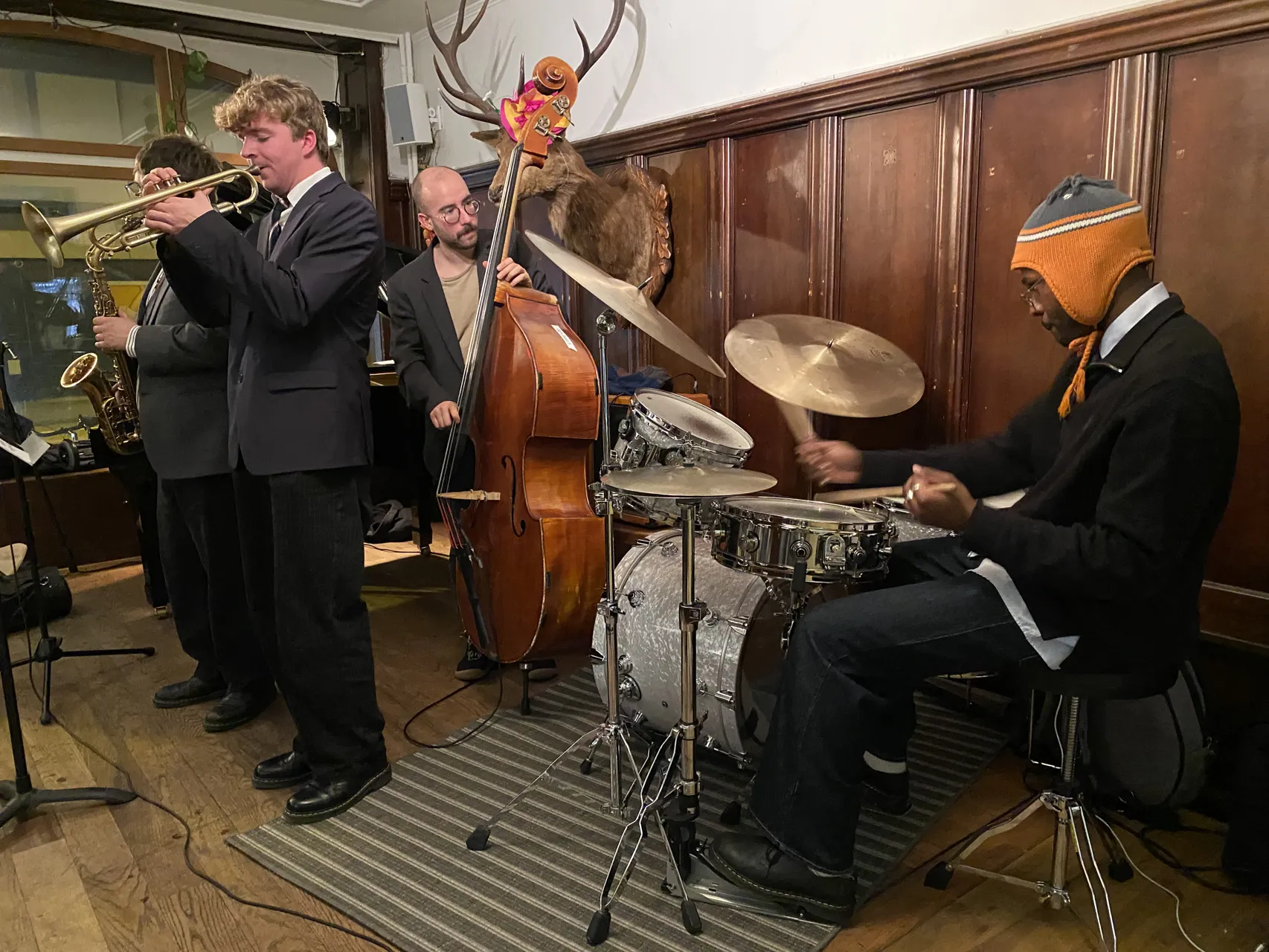 Genius Wesley, Drums, Ian Codina, bass, Max Teakle, Piano, Nikita Sipiagin, Altosax, und Emiel Verneert, Trompete.